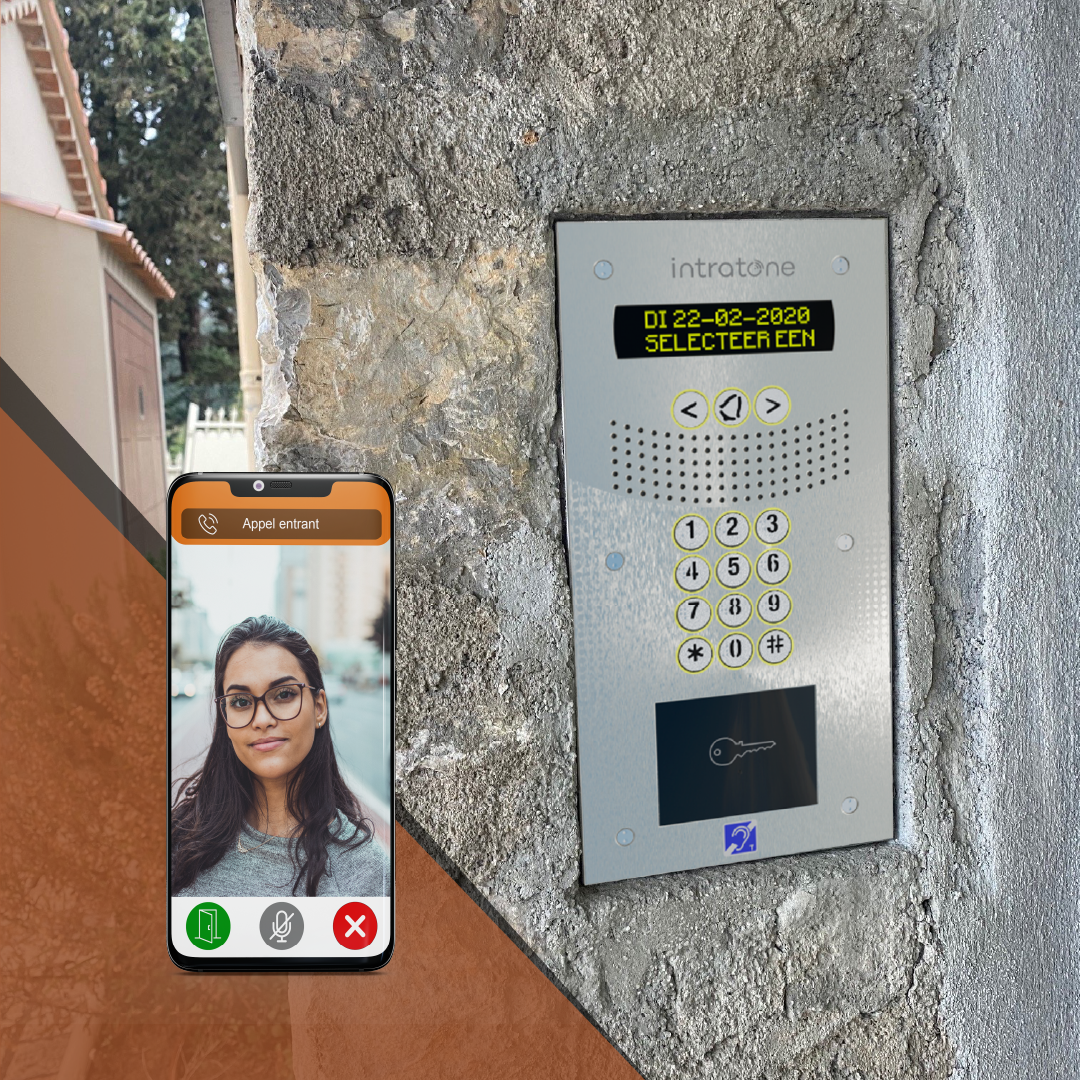 L'interphonie GSM consiste à ajouter une carte Sim dans l'interphone qui permet de voir et de communiquer avec son visiteur via son téléphone fixe ou mobile ou encore sur une tablette.