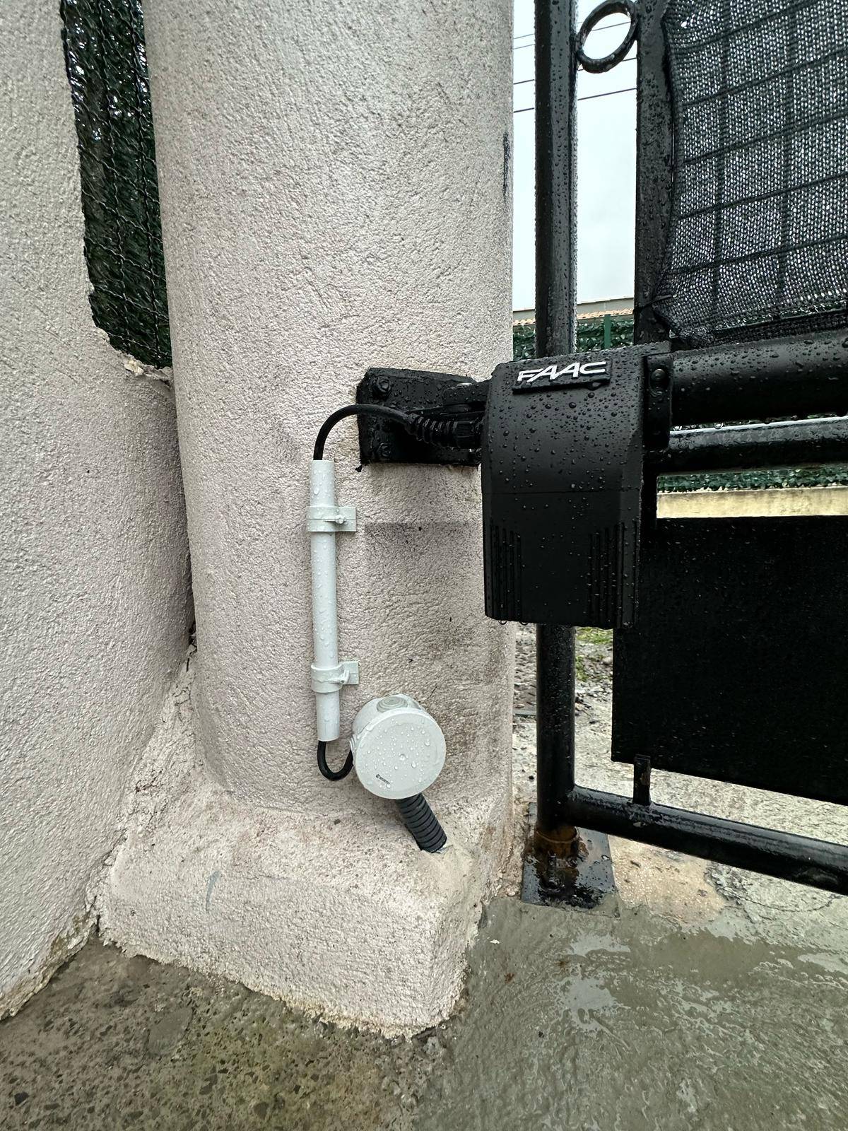 La motorisation doit rester discrète pour renforcer l'esthétisme général de l'ouvrage. Nous veillons donc ici à ce que les moteurs correspondent en termes de dimension à l'espace laissé disponible sur le poteau. Une fois fixés, nos techniciens réalisent de nombreux tests pour optimiser l'ouverture, le timing de l'ouverture et la résistance du moteur vis-à-vis de celle-ci.